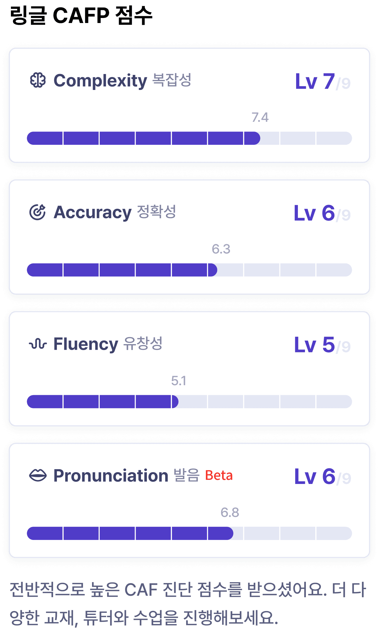 내 CAFP 레벨을 클릭하고, 상세 피드백을 확인해보세요!