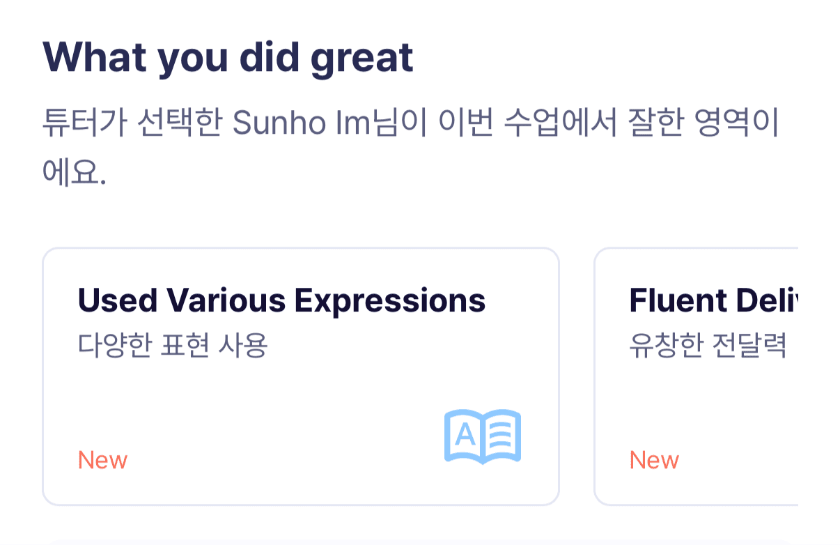 링글의 AI 분석은 카이스트 김주호 교수 KIXLAB과의 공동연구로, 링글 수업 데이터를 기반으로 한 개선된 ASR 기술을 통해 한국인 영어 발음 인식 오류율을 40% 개선하여 타사 대비 정확한 발음 인식률을 보이고 있습니다.