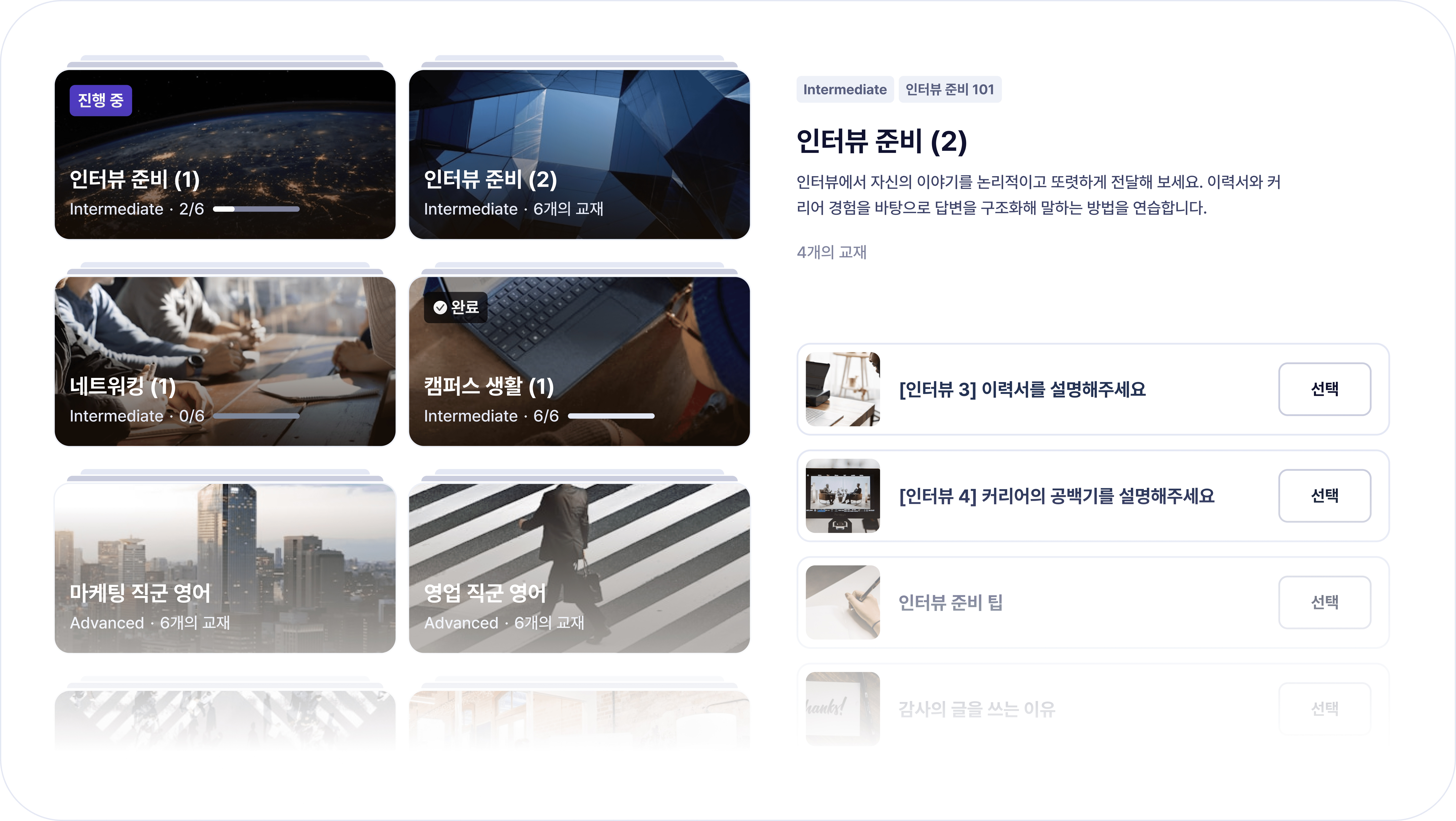 인터뷰 준비부터, 직군/상황별 교재까지.