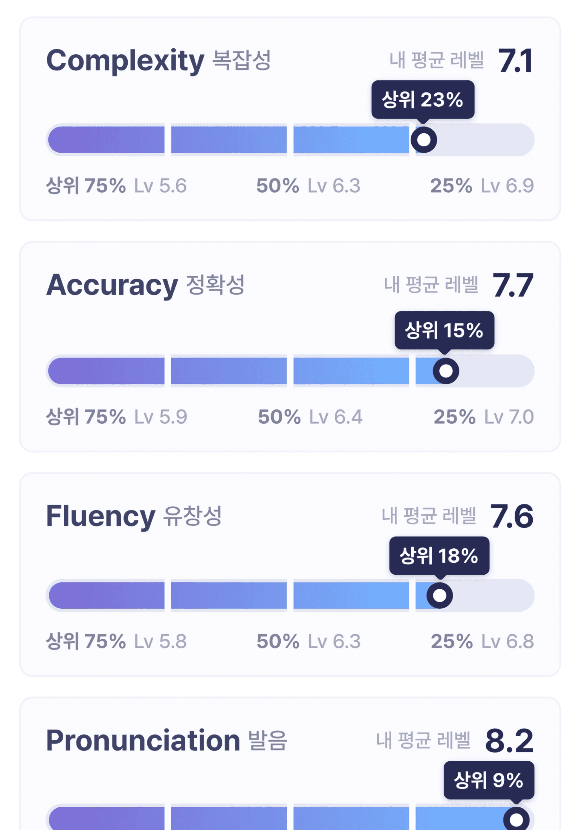 링글은 속도, 발음, 문법 등 객관적인 실력을