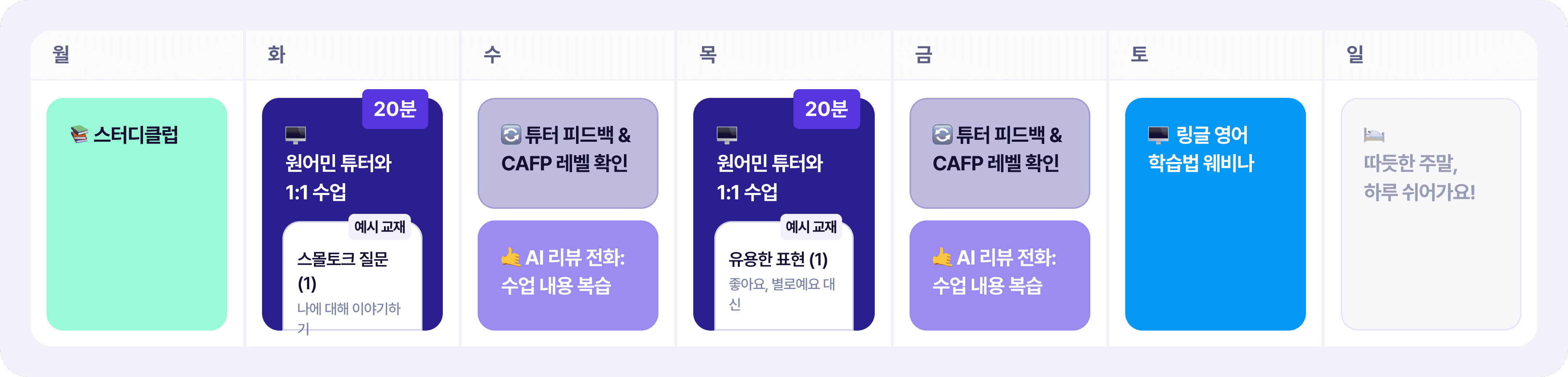 20분/40분 혹은 자유수강/매주수업듣기 옵션에 상관없이 수업권 구매 시 제공됩니다.